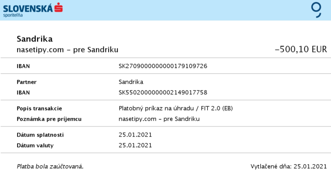 PLATBA PRIJATÁ + poďakovanie 26.1.2021 viď. / klikni pre zväčšenie