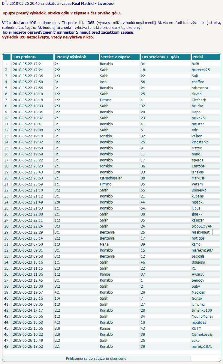 Prosím, ak máte záujem tipovať vo